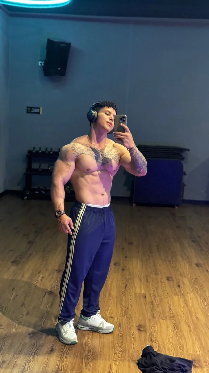 Let me show you a full Mr. Universe routine. Showing off my body is my specialty, and I'll tease you with my muscles. And when the mood gets hot enough, we'll do a sensual dance